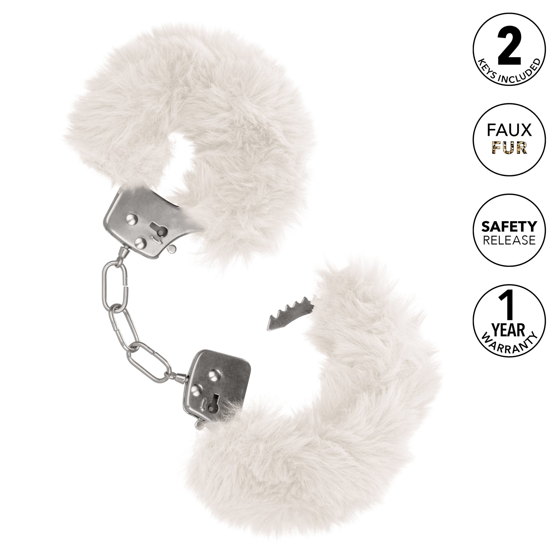 • Designer metal cuffs with enhanced faux fur for sensual play and